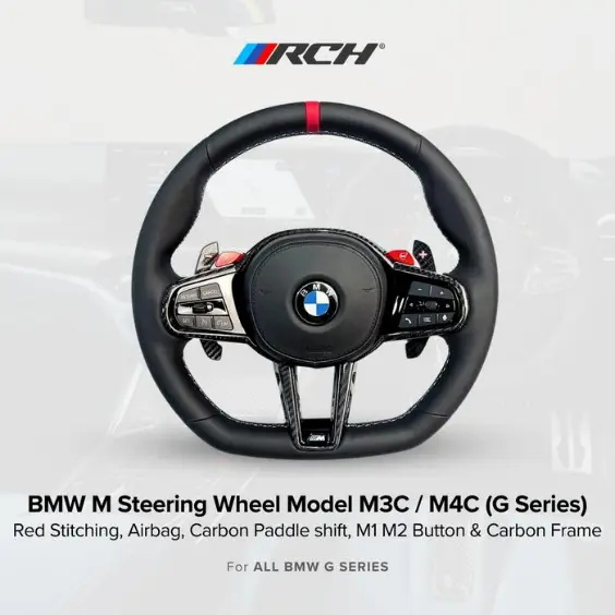 BMW Setir M3C/M4C G Series Model M3 CS M4 CSL LCI 2025 dengan Jait Merah Airbag Paddle Shift Carbon Frame untuk Semua BMW